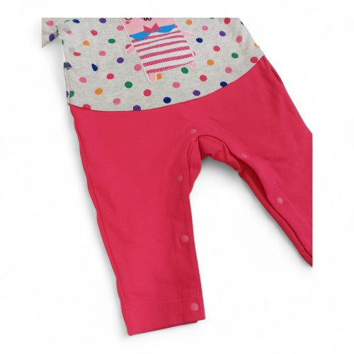 Short Description: This charming long-sleeve baby romper is perfect for keeping your little one cozy and cute. Featuring a playful polka dot pattern on the top and a sweet bear graphic on the chest, this one-piece is both stylish and comfortable. The soft pink pants add a pop of color, making it an ideal outfit for everyday wear or a special occasion.
