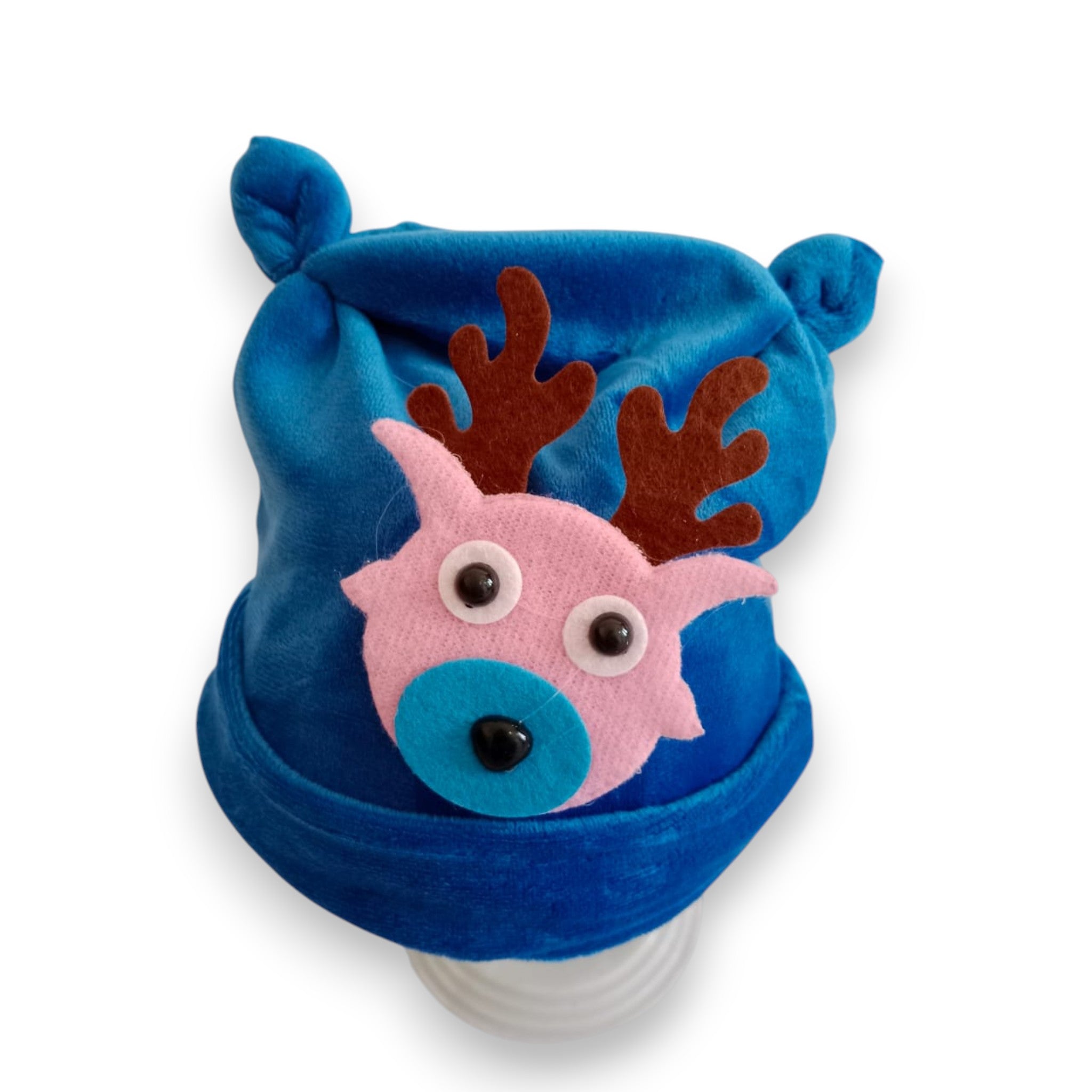 Keep your little one warm and festive with our charming blue Plush Reindeer Beanie Hat! Crafted from soft, cozy plush material, this delightful hat features an endearing reindeer design with cute ears, brown antlers, and a sweet blue reindeer face appliqué complete with embroidered eyes and a blue nose. Perfect for chilly days, holiday celebrations, or adding a touch of whimsy to everyday wear.