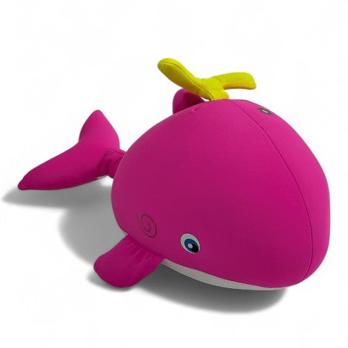 Design:A sweet pink whale with a white belly and a distinctive yellow spout on its back