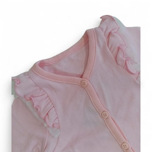 A Touch of Sweet Style:This charming light pink cardigan is a perfect layering piece for any little girl's wardrobe. The soft pastel color and delicate ruffles along the shoulder seams add a playful, stylish touch.