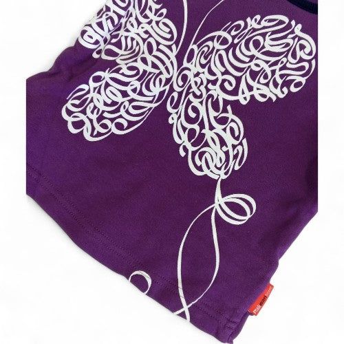 Artistic Butterfly Print:A large, intricately designed white butterfly graphic stands out against the rich purple background, creating a unique and eye-catching look.