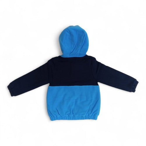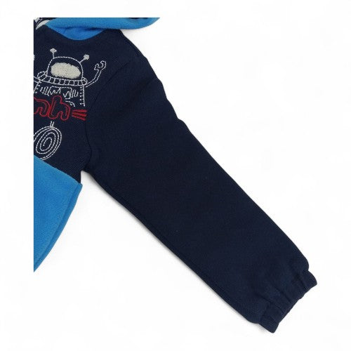 Product Description: Prepare your little one for a galactic adventure with this super-soft and stylish fleece hoodie. This two-toned pullover features a playful, space-themed design that's perfect for young explorers. The cozy, comfortable fleece material ensures your child stays warm, while the half-zip design makes it easy to slip on and off. The main feature is the charming cosmic robot graphic on the front, with "SPACE" written in a fun, block-letter font, making this hoodie a perfect blend of comfort and cool.