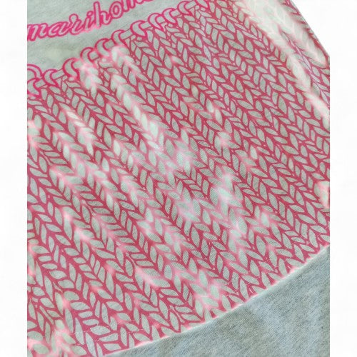 Details:Short sleeves, snaps at the bottom, a knit-style print on the torso, and "makine home" text on the chest.