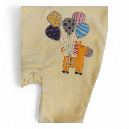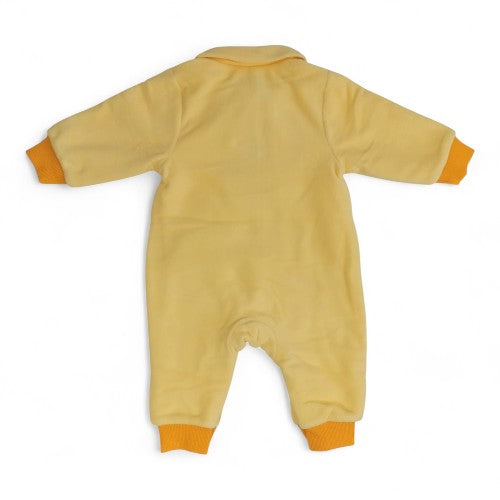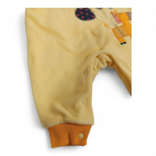 Overview Welcome your baby to a world of fun and coziness with this adorable yellow jumpsuit. Featuring a cheerful "Balloon Friends" design, this romper is perfect for keeping your little one warm and comfortable on cooler days. The soft, plush fabric makes it ideal for naps, playtime, or a casual outing, while the whimsical graphic adds a touch of pure joy.
