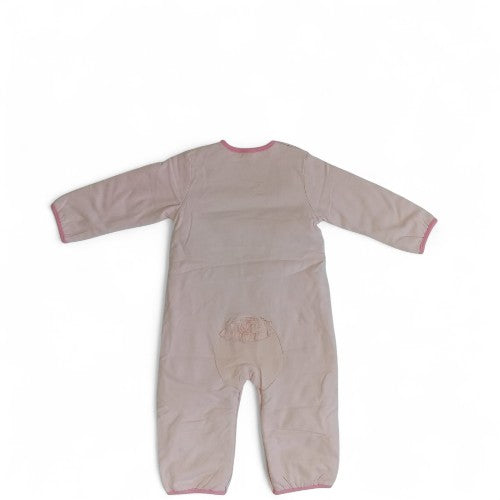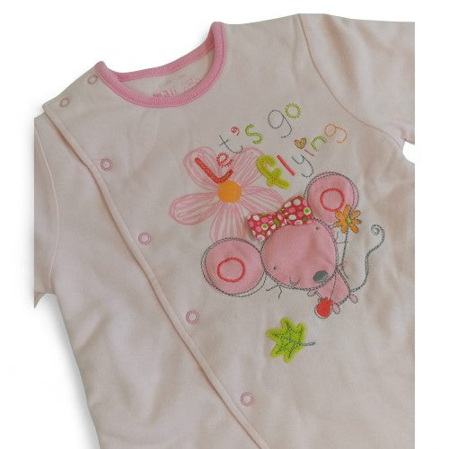 Your little one will be ready for adventures, big or small, in this adorable and cozy baby jumpsuit. Made from a soft, gentle fabric in a delicate pink hue, this long-sleeve sleeper is perfect for naptime, playtime, or a casual day out. The front is decorated with a sweet embroidered mouse character wearing a pink bow and the phrase "Let's go," adding a playful and charming touch to this essential wardrobe piece.