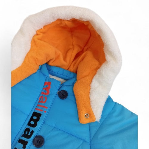 Prepare your little one for chilly weather with this vibrant and cozy blue padded snowsuit from Marihome. This one-piece outfit is designed to provide warmth and comfort while your baby enjoys the outdoors. The bright blue color, combined with the contrasting yellow and white trim, gives it a cheerful look. The full-length zipper makes it simple to dress your baby, while the padded construction ensures they stay snug and protected from the cold.