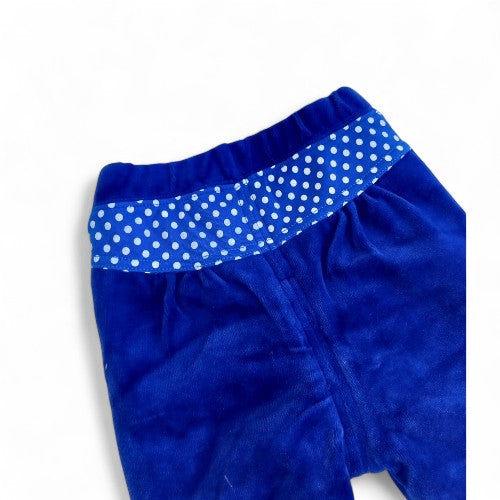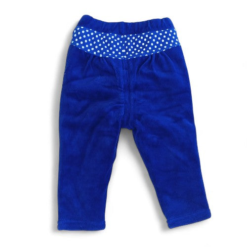 Keep your little one comfortable and on-trend with these adorable blue baby pants. Made from a soft, plush material with a ribbed texture, they provide a cozy feel perfect for playtime or relaxing. The pants feature a comfortable elastic waistband with two decorative buttons and unique front pockets adorned with a playful white polka dot pattern. A cute "marthome" embroidery on the left leg adds a personalized and charming touch. The design offers a relaxed fit, ensuring your baby has plenty of room to move, and the cuffed ankles help to keep the pants securely in place.