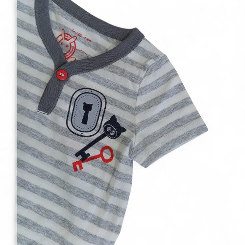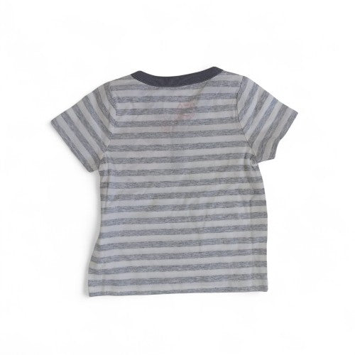 Dress your little one in effortless style with this charming short-sleeve t-shirt. This tee combines a classic grey and white stripe pattern with fun, embroidered patches that are sure to spark a smile. Made from a soft, breathable cotton blend, it's perfect for keeping your child comfortable during playtime, outings, or a cozy day at home.