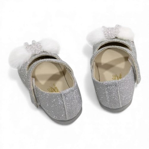 Charming Design: Features a whimsical blend of silver glitter, soft white faux fur, and a beaded centerpiece for a luxurious look.