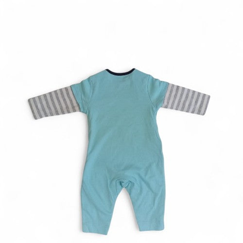 Send your little one on a fantastic flying adventure with this adorable long-sleeve romper. Made from a soft, comfortable cotton blend, this jumpsuit is designed for all-day play and cozy naps. The light blue body features a playful graphic of a bold red airplane and a colorful hot air balloon, with the text "FANTASTIC FLYING" to spark their imagination. The grey and white striped sleeves add a stylish touch, while the snap closures make for quick and easy changes.