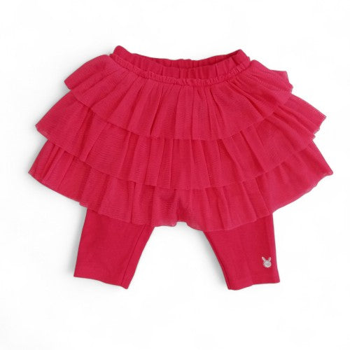 Design:Vibrant fuchsia leggings with an attached two-tiered tutu skirt.