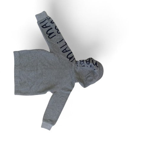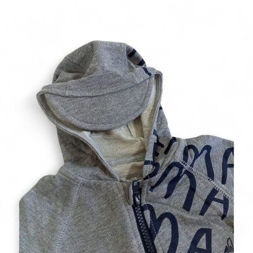 A Cozy & Stylish Layering Piece:This comfortable gray zip-up hoodie is a perfect addition to any child's wardrobe. The soft, thick material provides warmth, while the unique "MARI MAME HOM" print on the right side and sleeve adds a modern, eye-catching detail.