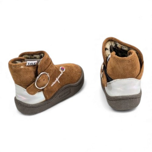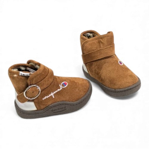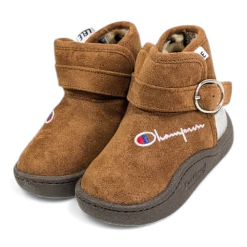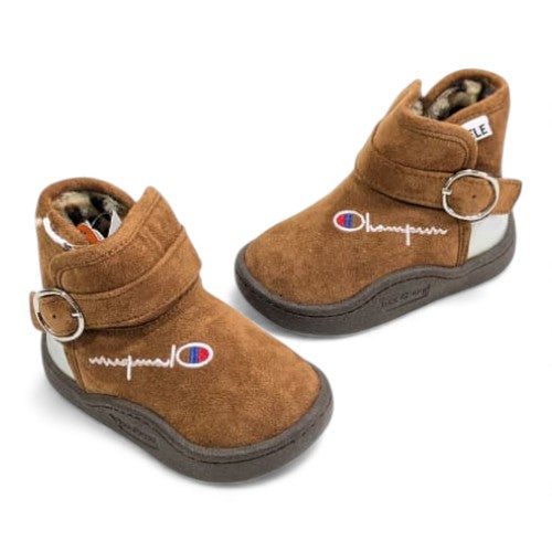 Keep tiny toes toasty and securewith these adorable and practical Champion ankle boots! Crafted from soft, rich microsuede in a warm chestnut brown hue, these booties combine plush comfort with a secure fit, making them perfect for your little one's adventures.